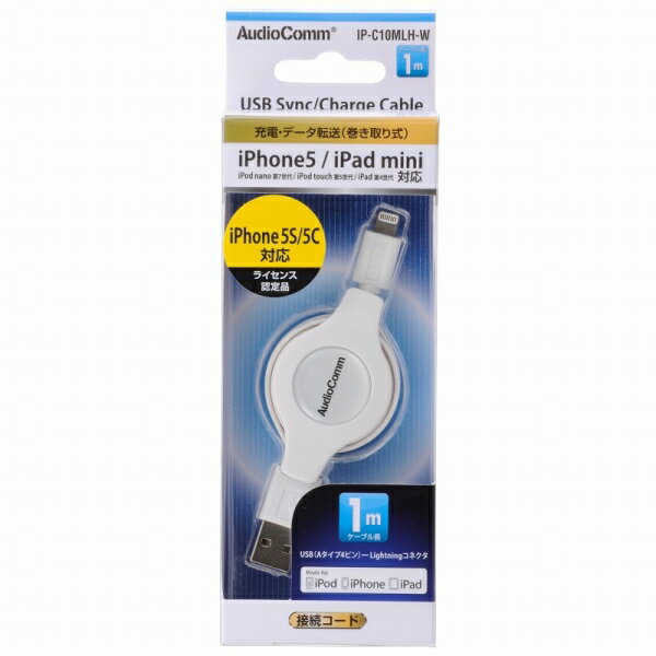 【巻取り ライトニングケーブル(iPhone5s対応)1m (IP-C10MLH-W)】[返品・交換・キャンセル不可]